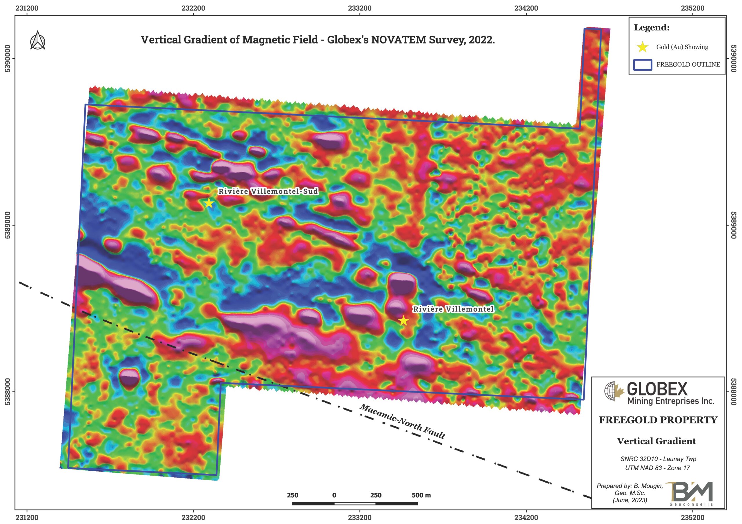 In 2022, GSA flew a Very High Resolution Magnetic Survey (NOVATEM) on the whole Freegold property.