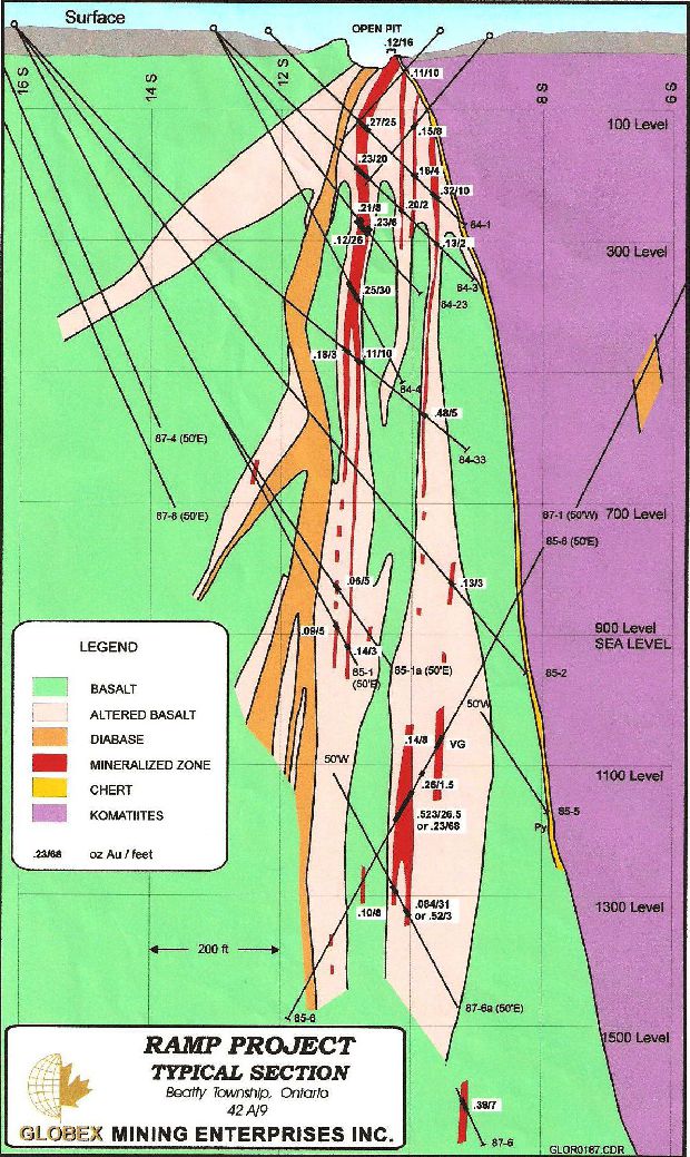 Note: Numerous references are made to “reserve” estimates in the Ramp History section. No reserves or resource stated in this section was completed after the implementation of National Instrument 43-101 and as such are considered historic as they have not been prepared for GSA by a Qualified Person. The reader is cautioned not to rely on these estimates.